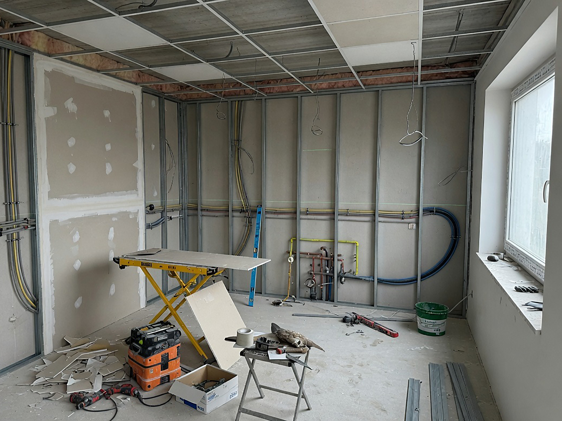 Beim Innenausbau kommt es darauf an, dass Trockenbau, Unterkonstruktionen, Deckenabhängungen, Vorsatzschalen und die Vorbereitung von Wand-, Decken- und Bodenflächen exakt aufeinander abgestimmt sind. Genau hier entstehen oft Verzögerungen, wenn verschiedene Arbeiten nicht ineinandergreifen. JAKOB Bau koordiniert diese Ausbauphasen so, dass Anschlüsse, Übergänge und Flächenaufbauten technisch passen und Räume ohne unnötige Unterbrechungen weiter ausgebaut werden können. Das schafft eine verlässliche Grundlage für die spätere Nutzung.
